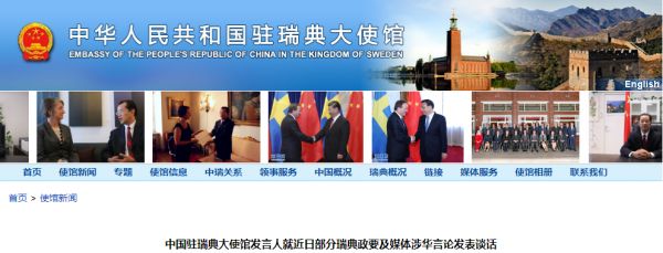 1月19日,中国驻瑞典大使馆愤怒发声:瑞典媒体此类论调没有任何事实依据,纯属虚构炒作,是不负责任的。